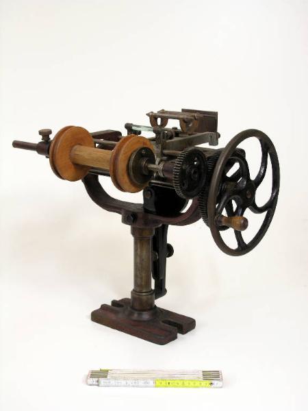 La macchina è formata da un supporto a colonna, con una base a piastra per il fissaggio su una base e da un corpo macchina in cui sono presenti nell'ordine: un pettine di invergatura (intercambiabile) in metallo, due verghe, un passafilo in vetro, il rocchetto per l'avvolgimento dell'ordito.