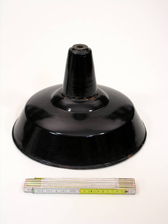 Lampadario in ferro smaltato nerofuori e bianco dentro, realizzato in un pezzo solo