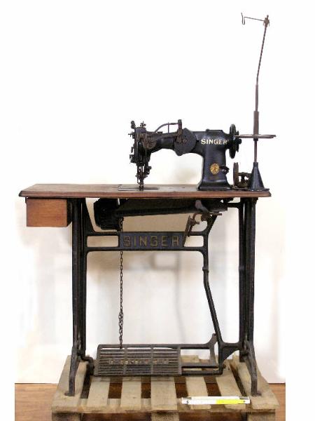 Macchina da cucire a pedale. Targhetta in bronzo "72W12"; targhetta al piede della macchina "W688735"