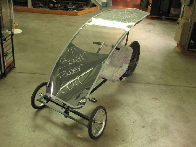 Bicicletta con una ruota posteriore e due ruote anteriori di diametro più piccolo.\nLe ruote sono unite da un telaio in ferro sul quale è fissato, nella parte posteriore, un sedile imbottito. Nella parte anteriore si hanno invece i pedali, la corona per la catena di trasmissione (mancante). Allo sterzo è saldato un tubo in ferro che termina con il manubrio. La parte anteriore del telaio termina a T con l'asse delle ruote.\nLa bicicletta è coperta da una carenatura aerodinamica in materiale plastico trasparente, parzialmente ricoperto da otto pannelli solari amorfi (per una superficie totale di 0,80 metri quadrati), collegati in serie a gruppi di quattro e poi in parallelo.\nNel mozzo della ruota posteriore è inserito un motore brushless (48V, 500W) e tra la ruota posteriore e il sedile sono posizionate le batterie (40Ah). La gestione del motor drive e l'ottimizzazione della carica delle batterie sono gestite da un microcontrollore elettronico della SGS Thomson, l'ST6.