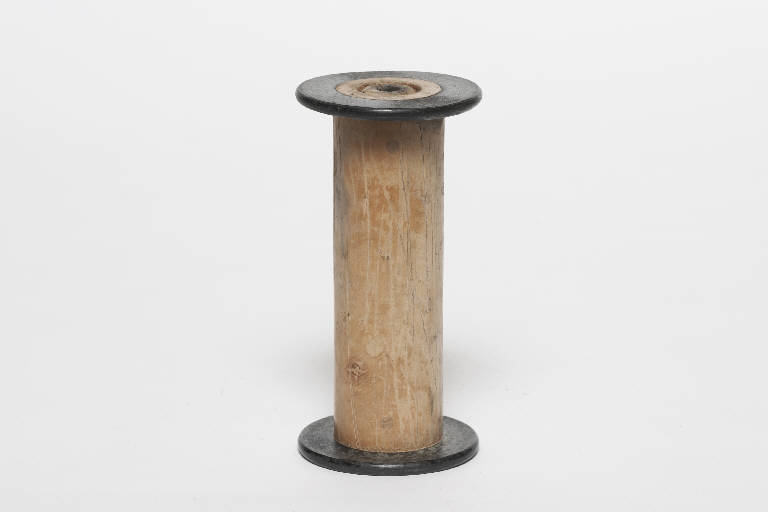 Rocchetto con anima in legno e flange in materiale sintetico. Possiede un canale passante lungo l'asse, per il posizionamento sul fuso del filatoio. Le circa 1100 rocche sono suddivise in scatoloni. A: Kg 14 = 100 rocche; B: Kg 35; C: Kg 20; D: Kg 22; E: Kg 23; F: Kg21; G: Kg 21