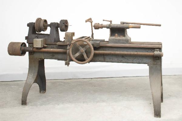 La macchina è costituita da una base in ghisa, su cui sono montati i due supporti per il fissaggio del pezzo da tornire, collegati all'asse motore. La leva di azionamento termina con impugnatura in legno