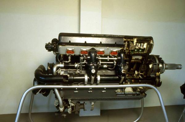 Motore a 12 cilindri in linea disposti a V di 60° d'ampiezza, raffreddato ad acqua. I cilindri sono in acciaio con una testata monoblocco in alluminio per ogni fila di cilindri; la testata prevede il passaggio della camicia dell'acqua in corrispondenza della sede delle valvole. La distribuzione è basata su quattro valvole per cilindro, comandate da un albero a camme in testa. Il motore dispone di quattro carburatori aspirati, due per lato, con compressore centrifugo ad uno stadio e una velocità. Due magneti, posti nella parte posteriore del motore, alimentano due candele d'accensione per ogni cilindro; i cavi elettrici sono sistemati nella parte interna della V dei cilindri. Un riduttore a ingranaggi conici ad assi fissi è posto tra l'albero a gomiti e l'albero dell'elica. Il motore è parzialmente sezionato.