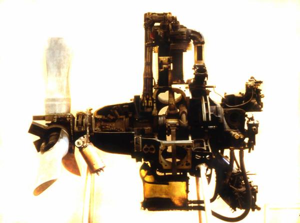Motore a 9 cilindri disposti a stella, raffreddato ad aria. Il motore è stato sezionato a scopi dimostrativi e presenta un solo cilindro impiantato sul carter. Il cilindro, ampiamente alettato, presenta un sistema di distribuzione costituito da quattro valvole in testa, regolate da aste e bilancieri. Il sistema di alimentazione è costituito da un carburatore aspirato e da un compressore centrifugo monostadio ad una velocità, posizionato sul retro del motore ed anch'esso sezionato. L'accensione del carburante è determinata da due candele per cilindro, alimentate da due magneti. Il motore è dotato di riduttore epicloidale, posizionato tra l'albero a gomito e l'albero dell'elica, costituito da ingranaggi conici con rapporto di riduzione 1:0,655. Nella parte inferiore del carter è sistemata la coppa dell'olio, anch'essa sezionata. Anteriormente, un'elica a tre pale sezionate è calettata sull'albero dell'elica.