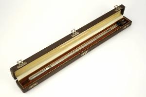 Tubo in vetro chiuso ad un'estremità da un tappo in materiale isolante con quattro connettori in metallo per il collegamento ad una sorgente elettrica e ad un misuratore del valore assunto dalla resistenza del resistore. All'interno, ai connettori sono collegati a due a due fili di platino con guaina isolante trasparente. All'altro capo terminano con l'elemento sensibile costituito da un resistore in platino. Questo resistore è costituito da un filo in platino avvolto su un supporto isolante.\nIl termometro è contenuto in un astuccio in legno ricoperto in pelle, con imbottitura interna.