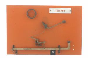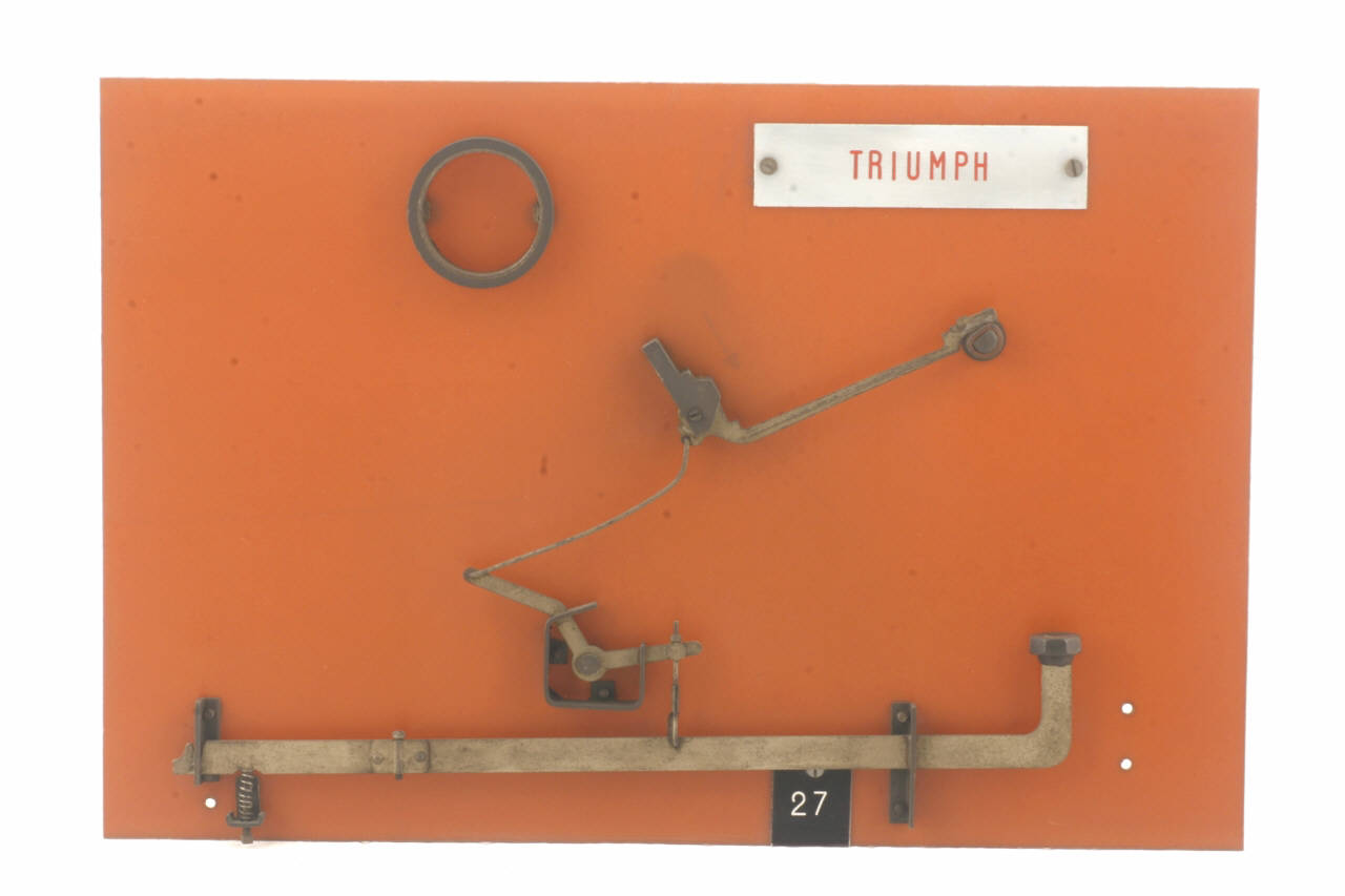 Cinematismo costituito da un sistema di leve di cinque elementi in acciaio, comprendenti la leva del tasto, la leva angolare secondaria, i due tiranti e il martelletto portacaratteri. Il bottone del tasto è in gomma dura di colore nera. Il movimento di ritorno del tasto è guidato dalla molla a torsione posta nella parte finale della leva. Il cinematismo è fissato ad un pannello in bachelite.