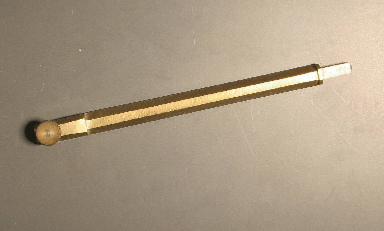 braccio rigido in ottone a sezione esagonale, con testa a sezione quadrata e parte finale munita di vite passante nell'incastro per il pennino