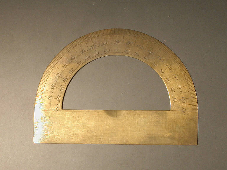 strumento ad arco di 180° con doppia graduazione: da 0 a 180 e da 180 a 0 gradi.