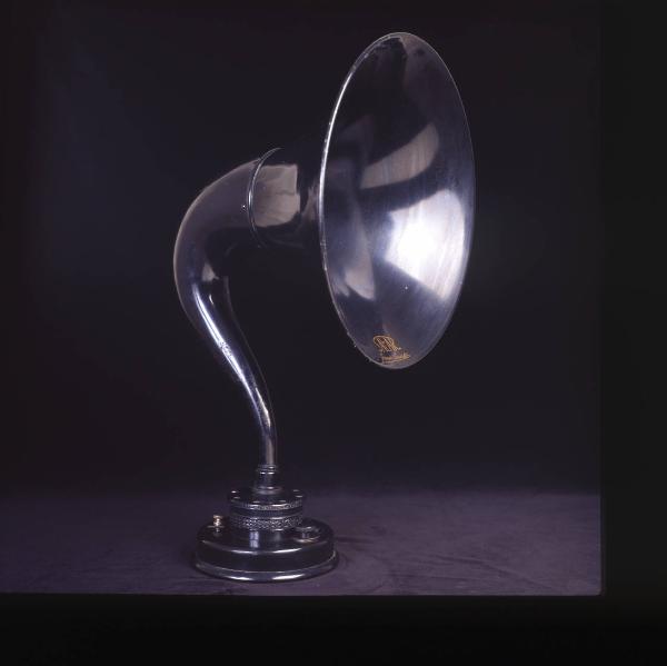 Questo altoparlante in bachelite è costituito da due parti: il motore e la tromba.\nNella base è inserito il motore costituito da un magnete permanente e una bobina e una membrana vibrante.\nLa tromba invece è costituita da una gola e una bocca ed ha la forma di un "collo di cigno".\nSulla base si hanno un connettore elettrico per il collegamento al radioricevitore e una manopola per la regolazione del volume.
