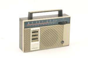 Apparecchio di forma rettangolare con involucro in plastica nera/beige/blu e maniglia in metallo e plastica nera. Sulla parete frontale troviamo l'altoparlante magnetodinamico circolare coperto completamente da una griglia metallica argentata e traforata e la scala di sintonia con le indicazioni numeriche per le onde medie OM (16-5,1Kc x 100). Ai lati della scala si hanno una rotella per la regolazione del volume, un selettore per la tipologia di alimentazione (pile/rete), un deviatore per accensione/spegnimento.\nSul retro si ha il vano per 2 batterie piatte da 4,5V. Fuoriesce il cavo di alimentazione per il collegamento alla rete elettrica.\nAll'interno si ha, oltre all'altoparlante, il circuito supereterodina a 8 transistor, 2 diodi a cristallo, un raddrizzatore metallico a ponte e un'antenna AM incorporata fissa.
