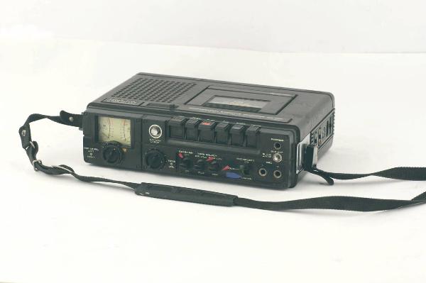 Dispositivo con scocca in plastica nera e tracolla per il trasporto.\nLa parete superiore è occupata dalla griglia dell'altoparlante circolare e dallo sportello che chiude il vano per l'inserimento della musicassetta con contagiri. Lo sportello è rotto in più punti.\nSulla parete frontale invece si hanno dei comandi per la regolazione del volume di registrazione, del bilanciamento destra e sinistra con relative scale semicircolari di lettura dei valori (indicazioni Battery da 0 a +5, VU da 1 a 10). Accanto si hanno il tasto per il test del livello delle batterie, i tasti per il funzionamento del registratore (registrazione, riavvolgimento, avvio, avanzamento, stop/espulsione cassetta, pausa), una boccola per il collegamento di cuffie e un tasto per la regolazione del microfono (0 o 20dB). Sotto questi comandi si hanno quattro interruttori per l'inserimento del dolby, dell'equalizzatore per il registratore (120 micros-70 micros), la regolazione di bassi e acuti, la tipologia di registrazione (automatica o manuale) e due boccole per il collegamento di un microfono.\nSul lato sinistro si hanno una presa per il cavo di collegamento alla rete elettrica e un interruttore. Sul lato destro si hanno delle boccole line in e out (sinistra e destra), una presa rec/play e delle boccole per il collegamento di altoparlanti esterni (da 8 Ohm).