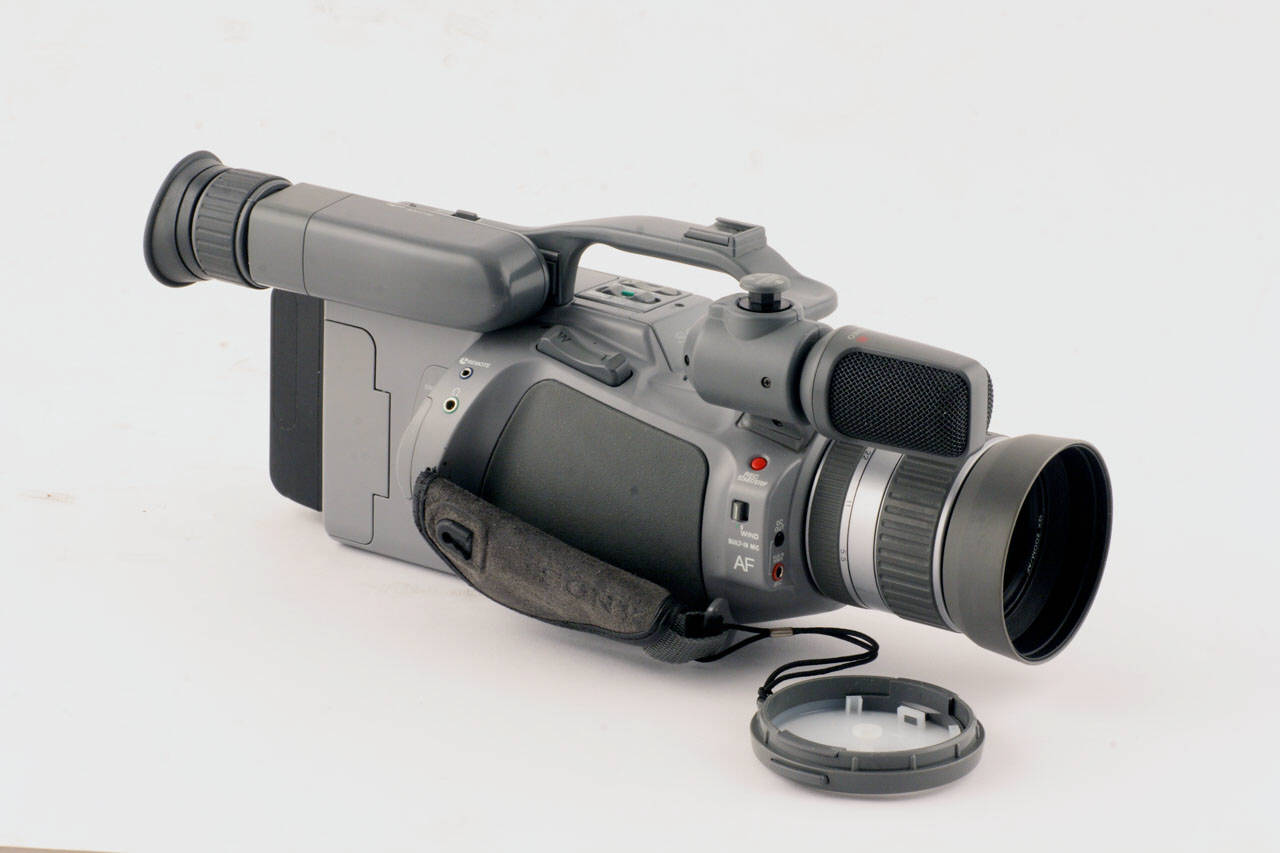 Videocamera in materiale plastico grigio scuro, portatile, con impugnatura ergonomia antiscivolo e maniglia superiore per il trasporto. \nIn asse con la maniglia si trovano, sul retro e sul fronte rispettivamente, il mirino con oculare e il microfono. In mezzo si hanno i tasti per la regolazione dello zoom e il comando di accensione. La parte del mirino può essere inclinata fino a 90°.\nSul lato sinistro si hanno il vano per l'inserimento della cassetta e alcuni comandi. Il vano porta cassetta è costituito da un comparto in metallo nel quale inserire la videocassetta. Sullo sportello del vano cassetta si trova un display digitale con alcuni comandi per la programmazione, la regolazione di data e ora, della velocità dell'otturatore ecc. Intorno al vano altri comandi regolano le modalità di memorizzazione e del contagiri. Si ha inoltre un dispositivo di blocco. Sopra allo sportello si hanno un commutatore per l'accensione e la selezione delle modalità di ripresa e riproduzione e i pulsanti per avvio, avanzamento e riavvolgimento veloce, arresto, pausa, espulsione cassetta e alcuni comandi per l'uso del menu che compare sul display.\nSul lato destro si trovano i comandi di avvio della registrazione, standby e arresto e boccole per connettori audio/video e cuffie.\nNella parte anteriore si ha l'obiettivo con zoom 12x con paraluce in gomma e tappo in plastica. Sul corpo dell'obiettivo si hanno un anello per la messa a fuoco e uno per la regolazione dello zoom (da 5.5 a 66mm), alcuni comandi per la messa a fuoco (manuale o automatica) e per l'inserimento di filtri.\nNella parte posteriore è inserita, su una guida a slitta, la batteria NP-90 Ni Cd.\nSotto alla videocamera si ha un foro filettato per l'inserimento di un cavalletto.
