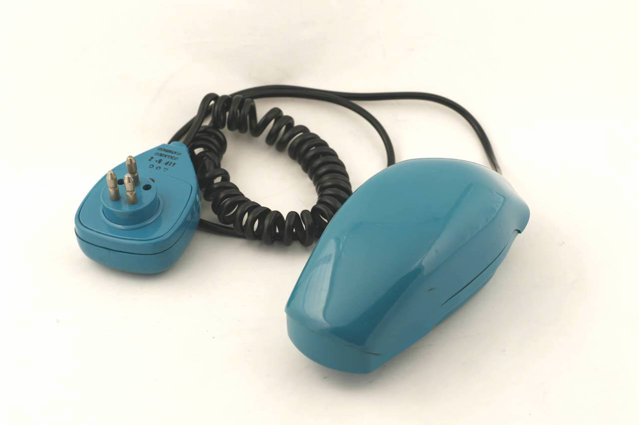 Apparecchio con scocca realizzata in plastica ABS azzurro-turchese divisa in due parti e con apertura a scatto. Ricevitore, microfono e disco sono contenuti in un'unica unità. In particolare ricevitore e disco sono contenuti nella parte che si prende in mano per impugnare il telefono, il microfono nella parte che si apre a scatto. Il disco è inserito al centro, sotto si ha il microfono e sopra il ricevitore. Quando è chiuso, il telefono è in attesa (la linea è libera). Una volta aperto, è accessibile il disco compositore per la selezione dei numeri e il telefono è in servizio (linea occupata). I circuiti interni sono miniaturizzati. La suoneria meccanica, detta a ronzatore, è inserita nella spina del telefono.