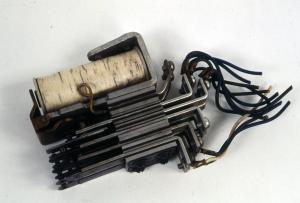 Il dispositivo è costituito da due serie parallele di lamelle metalliche, separate da distanziatori metallici e da altri di materiale isolante, il tutto assemblato tramite viti.\nLe lamelle presentano ad un'estremità i contatti elettrici e all'altra i morsetti di connessione dai quali fuoriescono fili di collegamento.\nNella parte inferiore del dispositivo è inserita una bobina ad un'estemità della quale si trova la propria terminazione di rame.