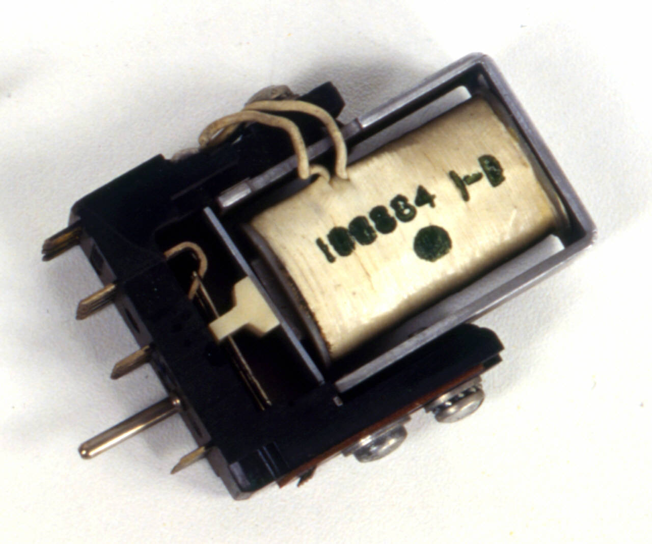 Il dispositivo è costituito da una struttura plastica a "U" sulla quale è montata una bobina elettromagnetica.\nDalla parte inferiore della struttura plastica fuoriescono, per il collegamento elettrico del dispositivo ad altre parti circuitali, 4 gruppi di 4 lamelle in ottone, 2 dei quali costituiti da 4 lamelle piegate a "V" rovesciato, ed un perno metallico per il suo fissaggio meccanico.\nNella parte sottostante la bobina una lamina di acciaio imperniata ad una estremità nella plastica supporta una struttura plastica a pettine, solidale con essa, dove sono posizionati 4 fili fissati ad un'estremità nella struttura plastica e liberi all'altra estremità di collegarsi o meno ai due gruppi di lamelle a "V" in funzione dello stato di eccitazione del relé. .\nAi 4 gruppi di lamelle fanno così capo:\n- al più esterno 4 fili elettrici uscenti dalla bobina,\n- all'estremità opposta un capo dei4 fili mobili\n- ai 2 restanti l'altro capo dei 4 fili mobili in funzione dello stato di eccitazione del relè.