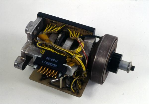 Il dispositivo è costituito da una struttura di alluminio sulla quale è inserito un motore elettrico al cui un albero è solidale un disco di acciaio; detto disco fuoriesce da una finestra aperta su una base plastica.\nSulla struttura sono presenti: un connettore per il collegamento alle altri parti del sistema, un circuito elettronico su una basetta di bachelite che comanda il motore e la base plastica sopra menzionata; ciascuna parte è fissata alla struttura tramite viti.\nSulla base plastica si trova la "testa di lettura" costituita da tante parti metalliche (pin) quanti i possibili fori delle schede da leggere (in questo caso 12); fili di rame inguainati collegano la testa al connettore.