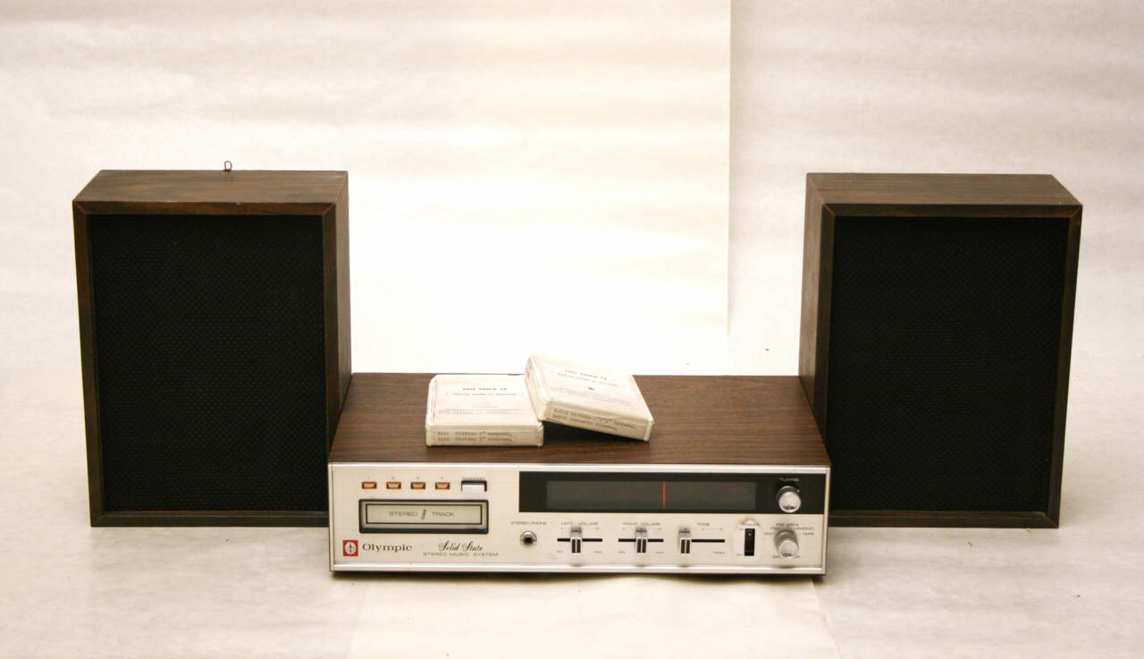 Impianto stereofonico costituito da un lettore di cassette Stereo8 e un radioricevitore con amplificatore incorporato e due casse acustiche.\nLa base è in metallo e legno e contiene l'ampilificatore, il motore elettrico del lettore, i circuiti a stato solido. La parete frontale ospita il vano per l'inserimento della cassetta Stereo8 con un tasto per la selezione canali con quattro spie numerate da 1 a 4 e la scala di sintonia per onde in modulazione di frequenza (FM 88-108MHz) e onde medie in modulazione di ampiezza (AM 54-160kHz) con rotella per la sintonia. Sotto alla scala si ha una boccola per la connessione di cuffie stereo, un deviatore per il bilanciamento del volume delle casse sinistra e destra, uno per i toni (equalizzatore), il tasto di accensione e un selettore per la selezione del dispositivo di ingresso del segnale o le frequenze radio (AM, FM, FM MPX, phono, tape).\nIl retro è chiuso da un pannello forato sul quale si hanno i connettori per antenna FM e AM, due boccole per il collegamento degli altoparlanti e di un giradischi, dei morsetti per il collegamento delle casse. Dal retro fuoriesce il cavo elettrico di collegamento alla rete.\nLe due casse sono costituite da una scatola in legno con il lato posteriore svitabile per l'accesso agli altoparlanti circolari; il lato anteriore è costituito dalla rete in tessuto. Dal retro fuoriescono i cavi di collegamento alla base.\nSono inoltre presenti due cassette Stereo8, con involucro in plastica. All'interno è avvolta una bobina di nastro magnetico con la fine e l'inizio giuntati insieme. Nella cartuccia è contenuto anche il pressore del nastro (pinch roller) che ne permette il trascinamento, oltre a feltrini su molle che fanno aderire il nastro alla testina di lettura ed ai contatti elettrici dell'elettromagnete di cambio traccia (sono disponibili 8 tracce, lette due alla volta in stereofonia).