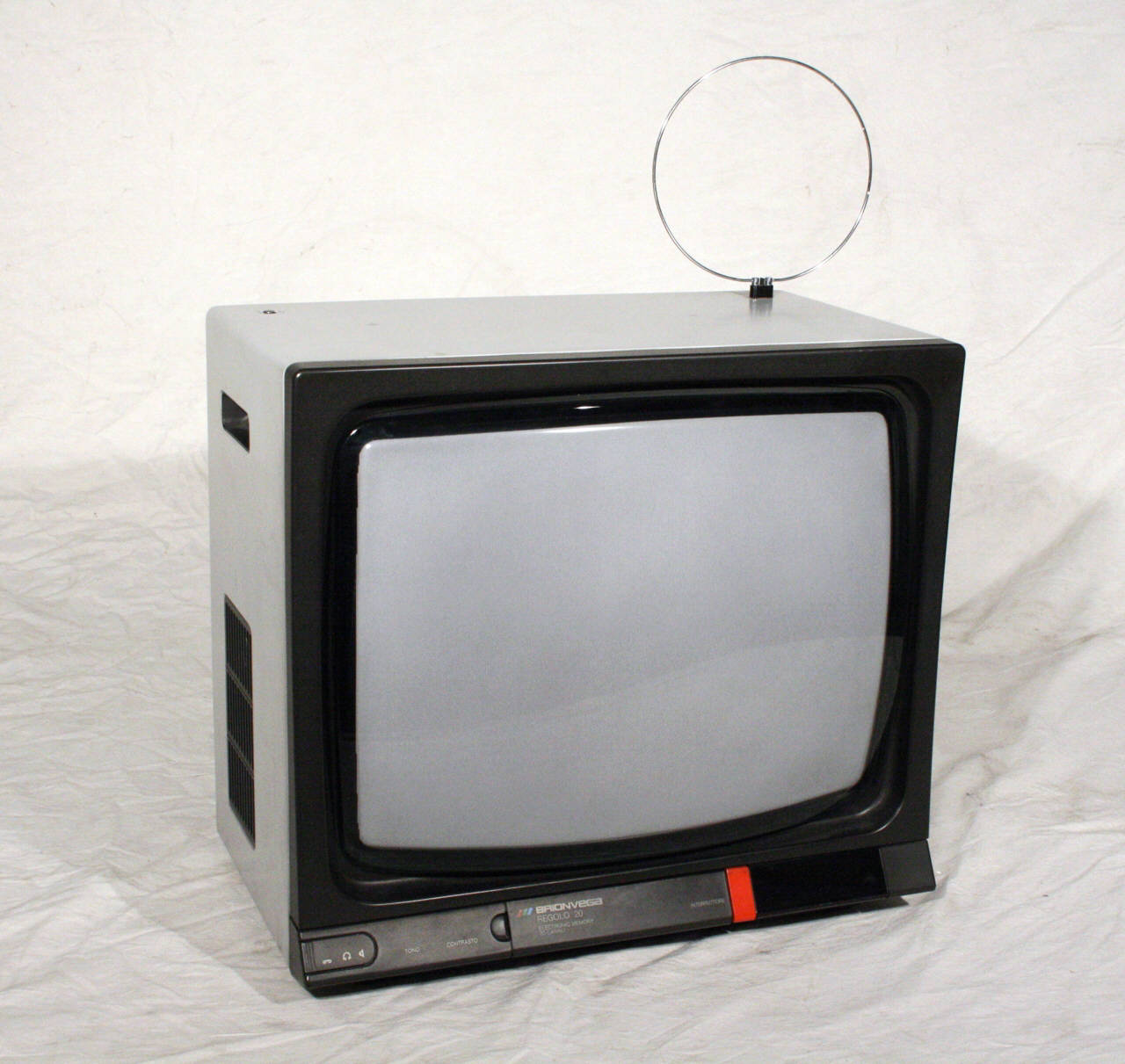 Televisore con mobile in legno verniciato e profili frontali in materiale plastico grigio scuro.\nLa parete frontale è quasi interamente occupata dallo schermo del cinescopio da 20 pollici superluminoso, autoconvergente, con geometria autocorretta.\nSotto allo schermo si hanno alcuni comandi per l'uso del televisore. Da sinistra verso destra si hanno uno sportellino a slitta dietro al quale si hanno una presa a norme DIN per il collegamento di un registratore esterno o di un amplificatore e una per allacciamenti esterni per cuffie e altoparlante, poi un altro sportello apribile che copre un vano per riporre il telecomando trasmittente (mancante), l'interruttore generale di accensione arancione e un display a Led.\nSotto allo sportello scorrevole si hanno due rotelle parzialmente sporgenti per la regolazione di tono e contrasto.\nSui lati sono presenti delle fessure per l'impugnatura e il trasporto e una griglia in plastica per la protezione dell'altoparlante ellittico.\nIl retro è in plastica nera, forata per l'aerazione. Sul retro si ha una presa per antenna (da 75 Ohm) e fuoriesce il cavo di alimentazione per il collegamento alla rete elettrica.