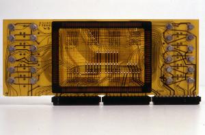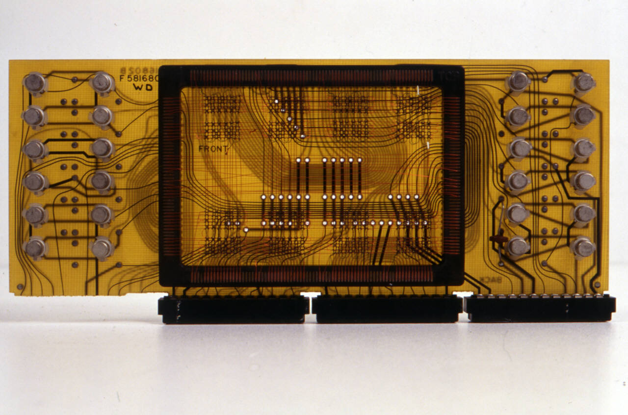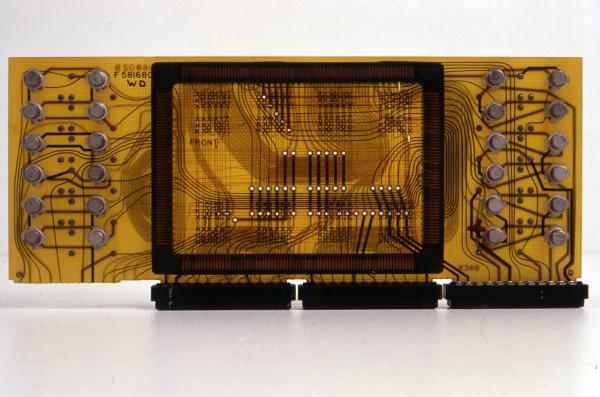 Il dispositivo è montato su una piastra di bachelite riportante un circuito stampato multistrato le cui terminazioni sono inserite in tre connettori di plastica nera.\nEsso consiste in un telaio di plastica che regge un tessuto di fili di rame e che forma un sistema matriciale, con anellini di ferrite inseriti negli incontri, nodi, tra ordito e trama (si contano 8 sottomatrici con 6x6 nodi) e un sistema di controllo di 24 transitor (12 da un lato e 12 dall'altro rispetto al telaio). Il telaio è potetto da una copertura di plastica trasparente.