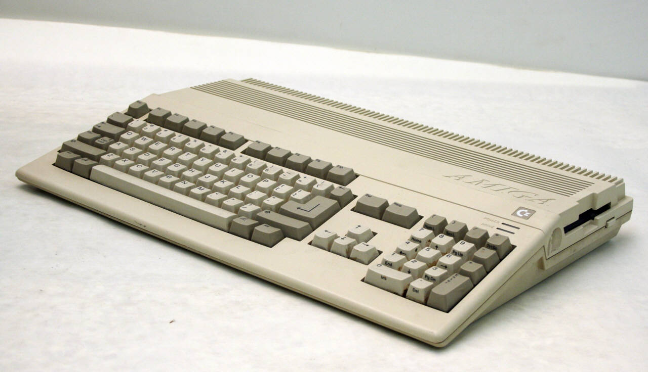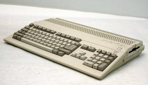 Unità principale con chassis di forma trapezoidale, in materiale plastico beige con tastiera beige e grigio chiaro e quattro piedini in gomma nera. La superficie superiore è sagomata per motivi estetici ed ergonomici. Nella parte alta si ha una grossa griglia di aerazione e due spie di accensione e azionamento drive.\nLa tastiera è munita di 94 tasti divisi in tastiera vera e propria alfanumerica (standard QWERTY più alcuni tasti speciali), tasti cursore, tastiera numerica e i tasti funzione (da F1 a F10). Lettere, numeri e tasti cursore sono chiari, gli altri grigio scuro. \nL'unità principale contiene un floppy drive incorporato da 3.5" doppia faccia e doppia densità di capacità 880kB, con apertura sul lato destro dello chassis per l'inserimento del floppy.\nSul lato sinistro, coperto da un coperchietto in plastica, il connettore per espansioni che rende disponibili tutti i segnali del Bus di sistema.\nSul retro si trovano due porte (control 1 e 2) per il comando giochi (paddle, joystick, penna ottica) o per il mouse, due boccole audio per suono stereo, una porta per disk drive esterno, una porta seriale RS232 e una parallela compatibile Centronics, connettore per l'alimentazione, una presa video RGB (per collegare monitor RGB), una boccola mono (per audio mono o monitor monocromatico).\nAll'interno, sulla scheda madre protetta da una schermatura metallica, sono inseriti, tra i vari componenti, il processore Motorola MC68000, con 512 kB di RAM e 256kB di ROM (128x 16 kbit) che contiene kernel e routines DOS. Si hanno inoltre numerosi chip custom per l'animazione (Fat Agnus 8370), per la grafica (Denise 8362), per il suono (Paula 8364), di controllo del BUS di sistema (Gary).\nSul fondo dell'apparecchio, dietro a uno sportello, si trova un vano per l'inserimento di una scheda di espansione RAM da 0,5MB.\nIn dotazione si hanno anche un mouse meccanico a due tasti (0,13mm/conteggio) e un trasformatore.\nE' presente anche un manuale di istruzioni.\nCaratteristiche tecniche:\nProcessore: \nCPU: Motorola MC68000\nVelocità CPU: 7,09 MHz (versione PAL)\nFPU: none\nROM: 256 kB\nRAM:512 kB\nVideo: Risoluzione massima: 80x32 (colonne x righe) in modo testo, interlacciata con 16 colori visualizzabili contemporaneamente da una palette di 4096 in modo grafica.\nSuono: stereofonico generato da 4 canali audio PCM con risoluzione 8 bit/28 kHz\nSistema operativo di serie: KERNAL AmigaOS\nAltro software di serie: Amiga BASIC
