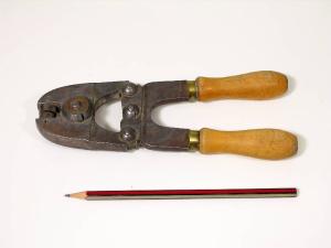 Lo strumento è costituito da una sorta di pinza formata da due manici che azionano un becco snodato, dotato di due piastre circolari con testo a rilievo le quali, schiacciando un frapposto sigillo in piombo, lasciano punzonature sulle due facce di esso: "NESSI A." da un lato e "COMO" dall'altro.