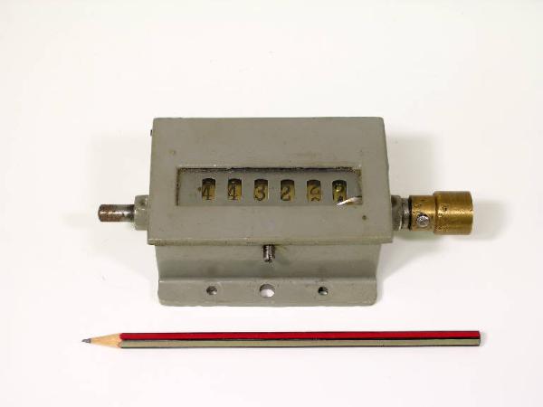 Lo strumento è costituito da un corpo metallico verniciato di grigio con una finestra per la lettura di 6 cifre. A destra la parte (in ottone) che con la sua rotazione provoca l'avanzamento delle cifre.