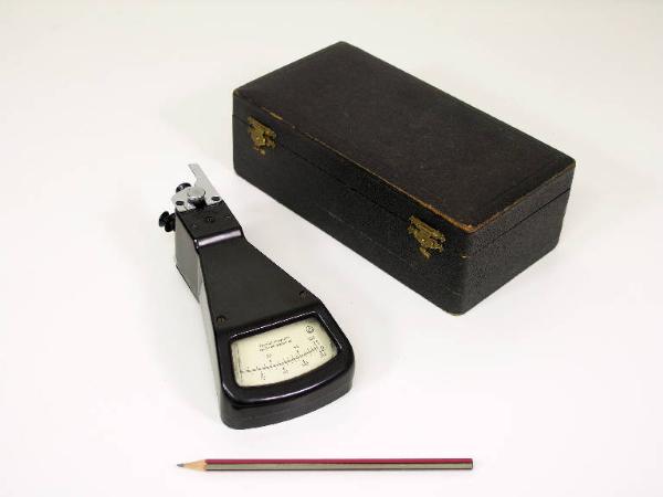 Lo strumento è costituito da un corpo centrale in metallo, di forma allungata, con un quadrante. La parte dello strumento che esegue la misurazione è quella posteriore, con tre rotelle scanalate: una fissa, le altre due collegate fra loro e mobili per la presenza di una molla all'interno dell'apparecchio. La lettura avviene nella parte anteriore, su un quadrante con due scale graduate: la scala "1" da 0 a 100 e la scala "2" da 0 200.