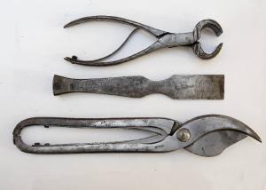 Cesoia, tenaglia e scalpello per autopsie