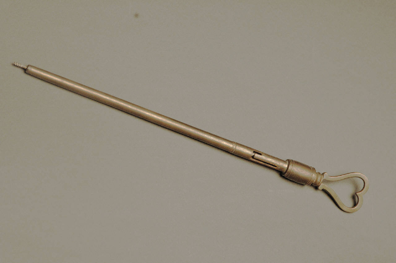 Lo strumento è costituito da due cannule d'acciaio, poste l'una dentro l'altra, all'interno delle quali può scorrere un'asta più sottile, terminante con una punta acuta a vite, manovrabile attraverso un manubrio posto all'estremità dello strumento.