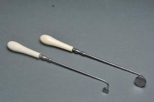 Su un'impugnatura in avorio tornita è avvitata un'asta metallica ricurva, terminante con una piastra a sezione circolare. L'intera asta poteva essere svitata dall'impugnatura per essere posta nel fuoco.