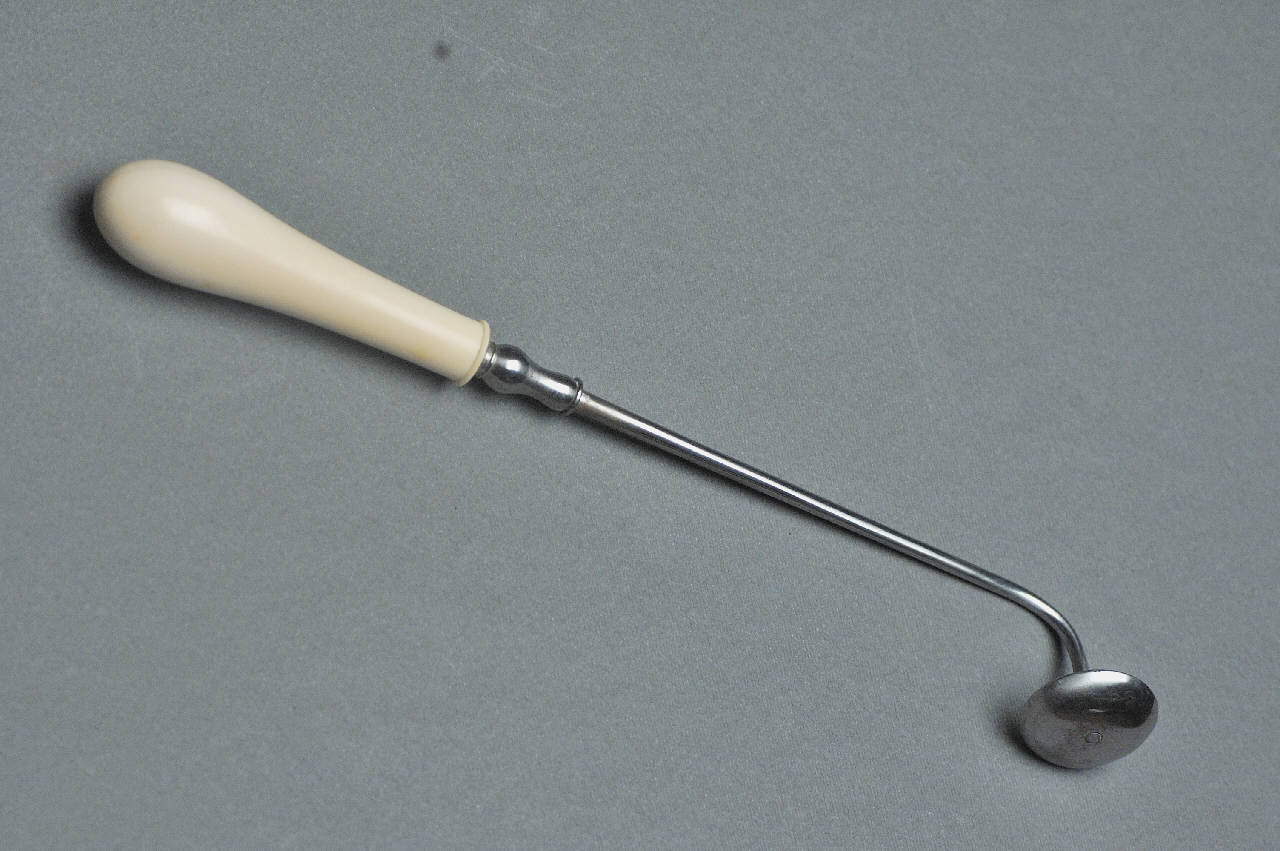 Su un'impugnatura in avorio tornita è avvitata un'asta metallica ricurva, terminante con una calotta sferica. L'intera asta poteva essere svitata dall'impugnatura per essere posta nel fuoco.