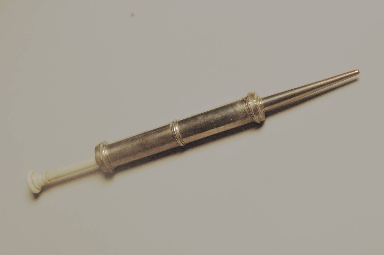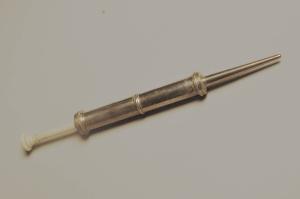 Siringa con stantuffo in avorio e corpo in metallo.