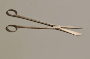 Lo strumento ha la forma di una grossa forbice con le lame assottigliate all'esterno e spesse dalla parte in cui si uniscono. Le lame sono sagomate con una bombatura verso l'esterno all'estremità delle stesse.