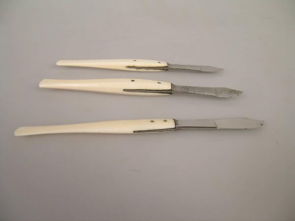 Strumenti dotati di un manico fisso e di una lama, appuntita, tagliente solo lungo l'estremità convessa, che presenta una leggera concavità nel tratto finale opposto al tagliente.