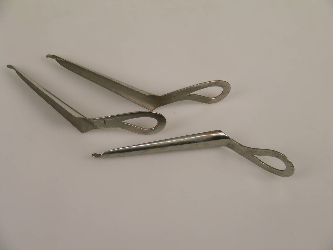 Strumenti di forma allungata, a forma di semicono, dotati di un'impugnatura fenestrata, posta ad angolo rispetto allo strumento stesso. Alla sommità si trova una sorta di nodulo che serviva per manovrare lo strumento insieme al catetere scanalato, facendo combaciare il nodulo con il solco presente sul caterere stesso.