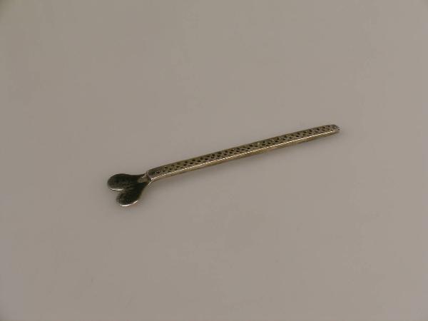 Lo strumento è una piccola cannula, appiattita da una parte. Su questa parte - che è leggermente concava - è presente una serie di forellini ravvicinati e regolari. L'impugnatura è piatta e presenta due lobi.