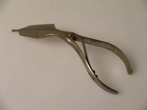 Lo strumento è formato da due bracci, terminanti ad ansa nell'impugnatura. Lo strumento si apre esercitando una pressione sull'impugnatura, all'interno della quale è fissata, tramite due viti, una piccola leva che consente la chiusura dello strumento al venir meno della pressione. I rebbi, terminanti in una lunga punta arrotondata, sono piatti, sagomati e leggermente ispessiti nella parte in cui si conguingono.
