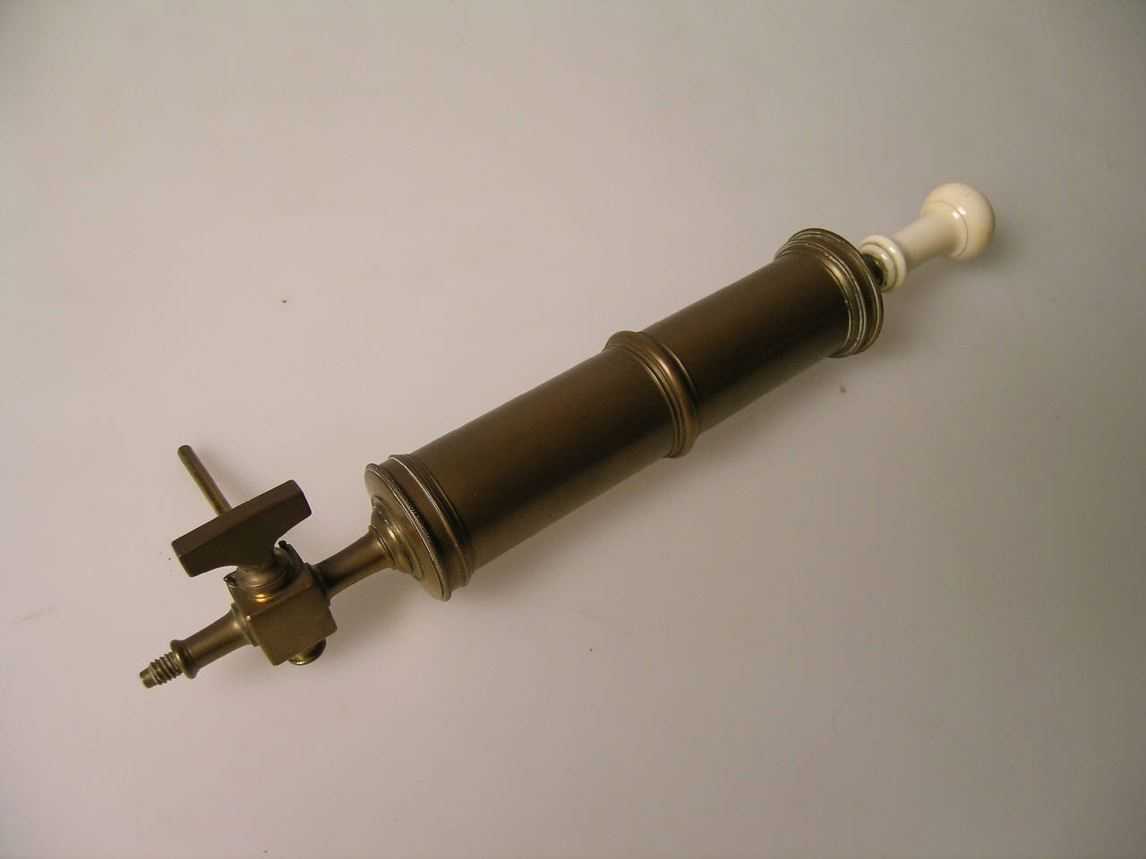 Lo strumento è composto di un corpo cilindrico cavo, all'interno del quale scorre uno stantuffo che termina in una impugnatura sagomata in avorio. Il sifone termina in una cannula conica, munita di un rubinetto che permetteva sia di estrarre che di iniettare sostanze nel corpo del paziente.\nIl rubinetto è inserito in un alloggiamento di forma cubica, su un lato del quale veniva inserita una piccola cannula attraverso la quale il liquido estratto poteva fuoriuscire. \nSulla punta dello strumento poteva essere avvitato un catetere (solitamente in argento).