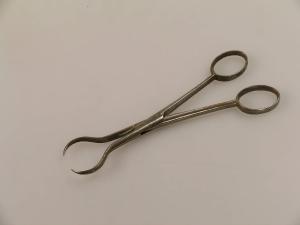 Forbice costituita da due bracci incrociati, terminanti ad anello nell'impugnatura. All'estremità i bracci, appuntiti, si allargano a formare un cerchio combaciando poi nuovamente nella punta.