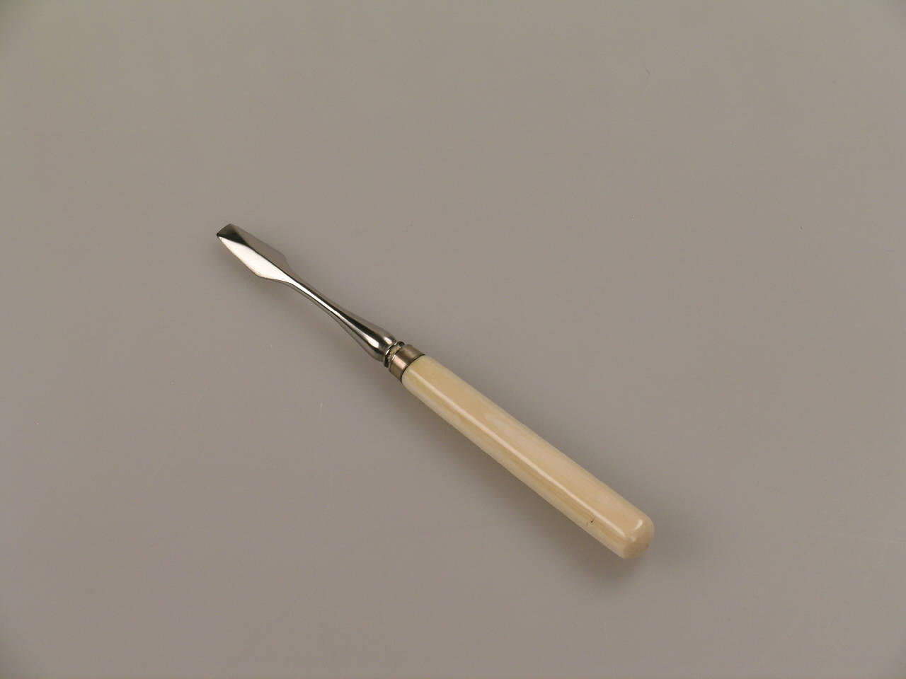 Su un manico in avorio a sezione ottagonale si innesta uno scalpello costituito da uno stelo metallico a sezione circolare terminante 'a cacciavite'.