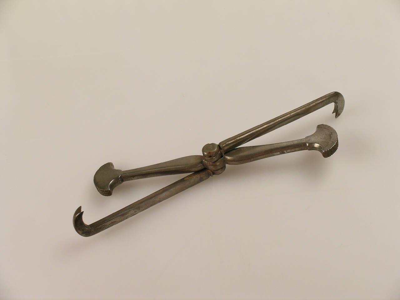 Strumento composto da una barretta di metallo sagomata, le cui estremità sono a forma di ventaglio e presentano una zigrinatura lungo il bordo (per evitare che lo strumento potesse scivolare sui denti stessi) e da due uncini a punta doppia (con i quali si faceva leva al collo del dente) fissati tramite una vite alla barretta. Ciascuno degli uncini è libero di compiere un arco molto ampio in modo che l'operatore potesse trovare l'angolazione più appropriata.