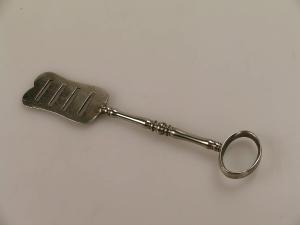 Lo strumento è costituito da una placchetta metallica rettangolare e sagomata, dotata di quattro scanalatute parallele al lato più corto e di un manico tornito terminante ad anello.