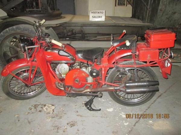 MOTOCICLETTA MOTO GUZZI SUPER ALCE \nANNO: 1950\nCILINDRATA: 498,4 Cm3\nPOTENZA: HP 23 A 4500 G/MIN.\nTARGA: VF 671\nMEZZO PARZIALMENTE RESTAURATO