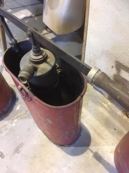 Pompetta monocilindrica spalleggiabile, usata nel primo novecento per incendi camino (canna fumaria) portata in spalle sui tetti e dove non era necessaria una grande quantità di acqua