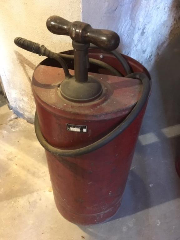 Pompetta monocilindrica spalleggiabile, usata nel primo novecento per incendi camino (canna fumaria) portata in spalle sui tetti e dove non era necessaria una grande quantità di acqua