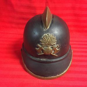 Elmo in cuoio dipinto, modello Milano, con visiera e coprinuca in cuoio, stemma, cresta e finiture in ottone,marocchino in cuoio (parte interna che serve ad adattare l'elmo al capo) con lacci, sottogola in cuoio