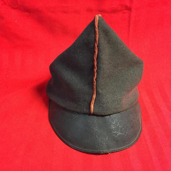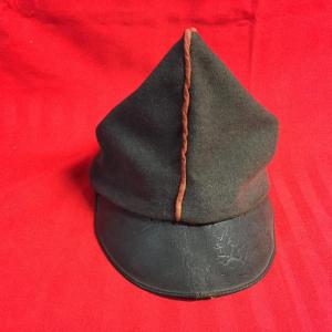 Bustina in panno con bordatura rossa, con visiera in cuoio, fodera interna in stoffa
