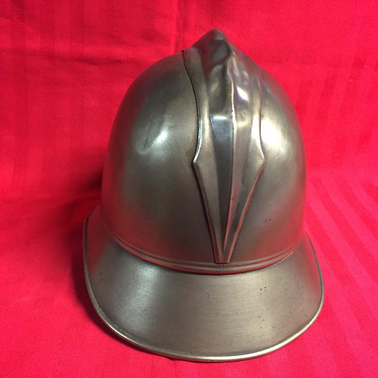 Elmo in ottone, con visiera e paranuca applicati, cresta saldata, marocchino in cuoio (mancano i lacci), sottogola in cuoio