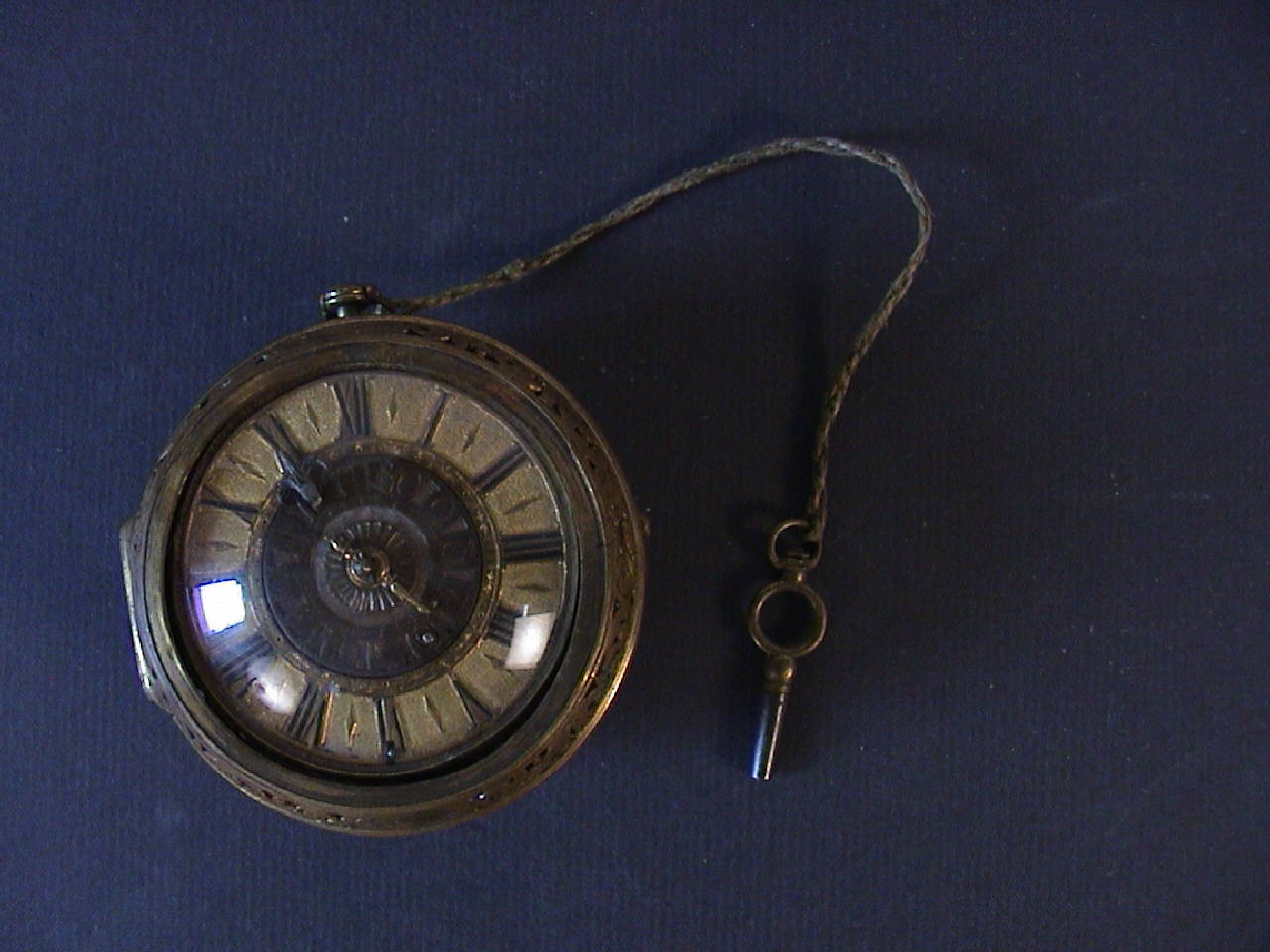 Doppia cassa con controcassa traforata e incisa. Cassa in due parti: fondo traforato e inciso con due fori di carica e supporto della campanella e lunetta portavetro. Pendente a disco con collo cilindrico e anello spinato.\nQuadrante in ottone con indicazione delle ore in rilievo e dipinte in caratteri romani. Al centro quadrante per la regolazione della sveglia con indice gigliato.\nMovimento a platina intera con colonnini a balaustro. Conoide a catena. Scappamento a verga. Ponte bilanciere traforato e inciso a due piedi con controperno in acciaio. Regolazione del tempo a chiavetta su quadrantino. Carica posteriore a chiavetta sia per il tempo che per la sveglia.