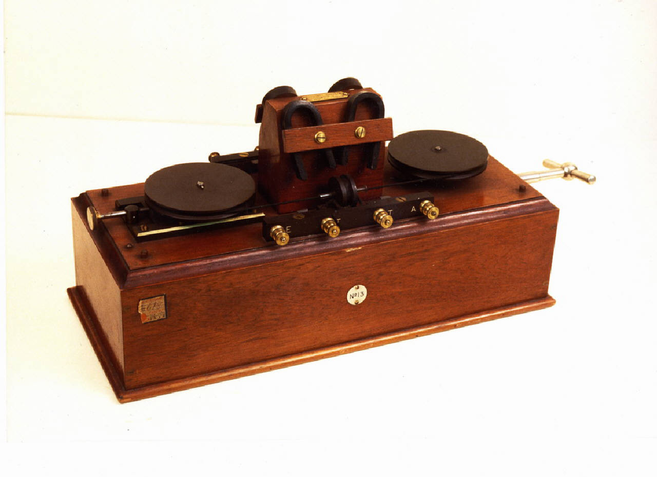 E' un Detector Magnetico Marconi del tipo industriale (o definitivo) costruito dalla Marconi Wireless Tel3graph Company Ltd. di Londra. E' composto da una scatola in legno all'interno della quale risiede un motore a molla caricabile dall'esterno attraverso una manovella. \nAll'esterno della scatola due pulegge in ebanite - una collegata al motore e l'altra libera (in folle) - trascinano una trecciola in ferro dolce.\nSu di una torretta in legno posta tra le due pulegge sono presenti due postazioni d'ascolto in cuffia. Ogni postazione d'ascolto è composta da: una coppia di magneti, una coppia coassiale di bobine in rame, due serrafili per la connessione terra/antenna, siglati "E" (Earth) e "A" (Aereo) e due serrafili per il collegamento del dispositivo di ascolto del segnale, siglati "T" (Telephone) .